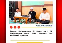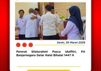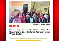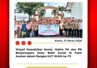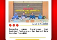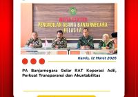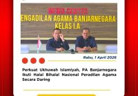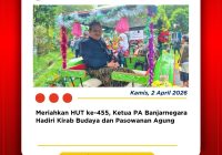 Banjarnegara, 2 April 2026 — Ketua Pengadilan Agama Banjarnegara, Dr. Azmir, S.H., M.H., turut mengikuti rangkaian perayaan Hari Ulang Tahun ke-455 Kabupaten Banjarnegara Tahun 2026 yang mengusung tema “Banjarnegara Maju dan Sejahtera.” Puncak acara yang digelar di Alun-Alun Banjarnegara ini berlangsung meriah melalui kegiatan Kirab Budaya dan Pasowanan Agung, yang ditandai secara simbolis dengan penabuhan… Read More »