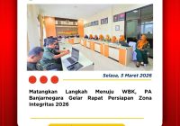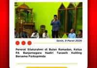 Banjarnegara, 09 Maret 2026 — Dalam rangka menyemarakkan bulan suci Ramadan sekaligus memperkuat sinergi antar unsur pimpinan daerah, Ketua Pengadilan Agama Banjarnegara, Dr. Azmir, S.H., M.H., bersama jajaran Forum Koordinasi Pimpinan Daerah (Forkopimda) menghadiri kegiatan Tarawih Keliling yang diselenggarakan di Desa Kemaranggon, Kecamatan Susukan. Kehadiran para pimpinan daerah dalam kegiatan ini menjadi wujud nyata kebersamaan… Read More »