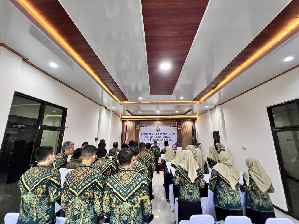Banjarnegara — 2026. Memasuki Tahun 2026, Pengadilan Agama Banjarnegara mengawali langkah strategis dalam memperkuat budaya kerja yang bersih, profesional, dan berorientasi pada pelayanan melalui kegiatan Penandatanganan Pakta Integritas dan Komitmen Bersama. Kegiatan yang berlangsung di Ruang Aula Pengadilan Agama Banjarnegara ini dipimpin langsung oleh Ketua Pengadilan Agama Banjarnegara, Dr. Azmir, S.H., M.H., serta diikuti oleh seluruh unsur pimpinan, hakim, Pegawai Negeri Sipil (PNS), dan Pegawai Pemerintah dengan Perjanjian Kerja (PPPK) di lingkungan PA Banjarnegara.