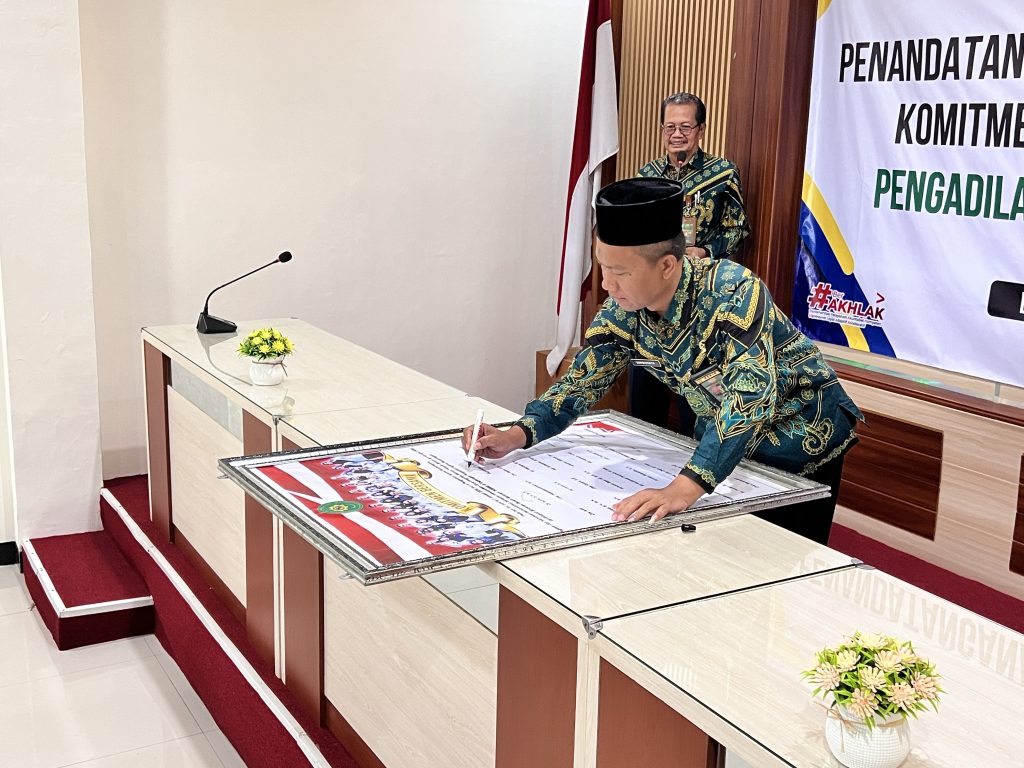 Penandatanganan dilakukan secara tertib, dimulai dari unsur pimpinan dan hakim, kemudian diikuti oleh seluruh pegawai. Momentum ini menjadi simbol bahwa seluruh aparatur PA Banjarnegara memiliki satu tekad untuk menjaga marwah institusi, meningkatkan kualitas layanan, dan menumbuhkan kepercayaan publik.