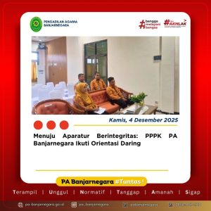 Banjarnegara — Jumat, 05 Desember 2025. pegawai Pengadilan Agama Banjarnegara mengikuti kegiatan overview orientasi Pegawai Pemerintah dengan Perjanjian Kerja (PPPK) yang dilaksanakan secara daring melalui Zoom Meeting. Kegiatan ini merupakan bagian dari program pembinaan nasional untuk membekali PPPK dengan pemahaman menyeluruh mengenai peran, tugas, serta tanggung jawab sebagai aparatur peradilan.