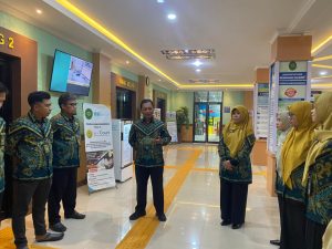 Banjarnegara — Kamis, 13 November 2025. Bertempat di ruang pelayanan Pengadilan Agama Banjarnegara, Panitera Fathul Hadi, S.H., M.H., memimpin sebuah briefing koordinatif yang dihadiri oleh seluruh pejabat dan pegawai bagian Kepaniteraan serta Petugas Pelayanan Terpadu Satu Pintu (PTSP). Pertemuan ini digelar sebagai langkah evaluasi dan perbaikan terhadap pelaksanaan Survey Kepuasan Masyarakat (SKM) yang saat ini belum mencapai kuota minimal sesuai standar yang ditetapkan.