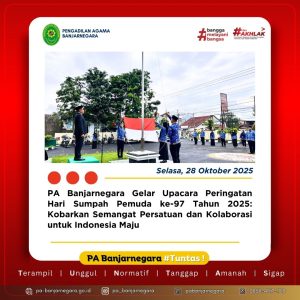 “Kita semua memiliki tanggung jawab untuk menjaga semangat Sumpah Pemuda. Semangat yang mengajarkan bahwa keberagaman bukan penghalang, melainkan kekuatan. Di Pengadilan Agama Banjarnegara, semangat itu tercermin dalam kerja sama, disiplin, dan dedikasi kita dalam memberikan pelayanan terbaik kepada masyarakat,” ujar beliau.