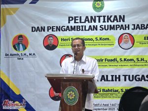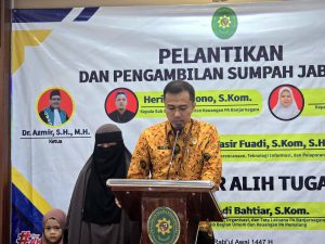 Dalam sambutannya, Ketua PA Banjarnegara, Dr. Azmir, S.H., M.H., menyampaikan ucapan selamat kepada pejabat yang baru dilantik. Beliau menegaskan bahwa pelantikan ini merupakan bagian dari regenerasi kepemimpinan dan penguatan tata kelola organisasi, sehingga diharapkan dapat memperkuat kinerja kesekretariatan dan pelayanan publik di lingkungan PA Banjarnegara.