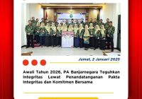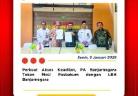 Banjarnegara, 05 Januari 2026 — Mengawali tahun kerja 2026, Pengadilan Agama Banjarnegara kembali menunjukkan komitmennya dalam memperluas akses keadilan bagi masyarakat melalui penyelenggaraan Penandatanganan Memorandum of Understanding (MoU) dengan Lembaga Bantuan Hukum (LBH) Banjarnegara selaku penyedia jasa Pos Bantuan Hukum (Posbakum). Kegiatan ini menjadi wujud nyata sinergi kelembagaan untuk meningkatkan kualitas layanan bantuan hukum gratis,… Read More »