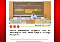 Banjarnegara, Senin (2 Maret 2026) — Pengadilan Agama Banjarnegara mengikuti Rapat Koordinasi Langkah Strategis Belanja Kementerian/Lembaga (K/L) Tahun Anggaran 2026 sebagai bagian dari upaya memastikan pelaksanaan anggaran berjalan efektif, tepat sasaran, dan sesuai ketentuan yang berlaku. Rapat koordinasi ini dilaksanakan dalam rangka memperkuat strategi percepatan realisasi belanja negara serta memastikan kualitas perencanaan dan pengelolaan anggaran… Read More »