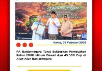 Banjarnegara — Pengadilan Agama Banjarnegara turut berpartisipasi dalam kegiatan Pemecahan Rekor MURI Minum Dawet Ayu sebanyak 45.500 cup yang diselenggarakan di Alun-Alun Banjarnegara. Kegiatan ini menjadi momen bersejarah sekaligus bentuk promosi budaya dan kuliner khas daerah Kabupaten Banjarnegara. Acara yang dihadiri oleh unsur Forkopimda, instansi pemerintah, lembaga vertikal, komunitas masyarakat, hingga ribuan peserta ini berlangsung… Read More »